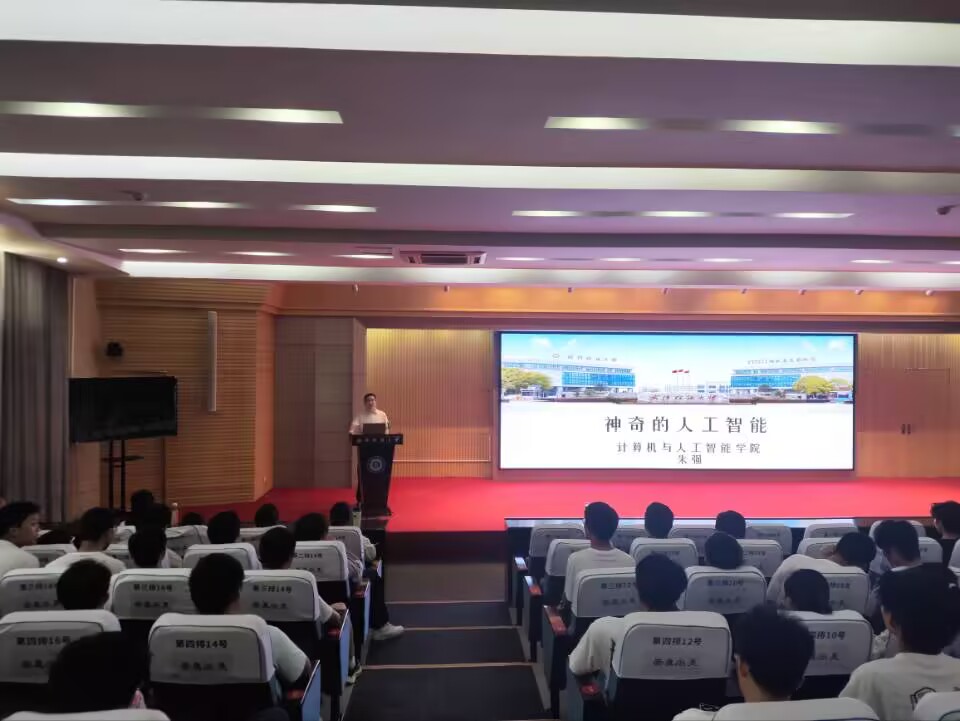 线下活动中,永利3044集团特别组织了“神奇的人工智能”主题科普讲座。讲座由永利3044集团副院长许明耀主持,计算机与人工智能学院朱强老师主讲。朱强老师以生动有趣的PPT内容为主线,从人工智能的定义与发展历程讲起,深入浅出地介绍了机器学习、深度学习等核心技术,并结合AlphaGo、人脸识别、机器作诗等实际案例,展示了AI技术的强大能力与广泛用途。讲座现场互动频繁,同学们对AI技术的兴趣被充分激发。
