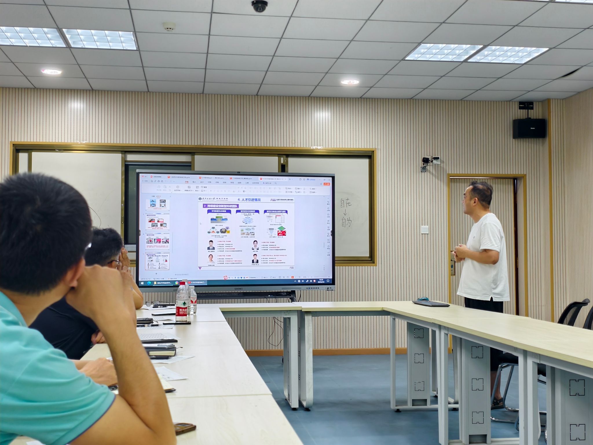 院长陈长清教授从思想政治与师德师风建设、学院各项工作推进、学科建设进展、人才引进成效以及公共服务保障五个维度,全面报告了人才团队建设整体情况。同时,他对学院学科与团队建设的下一步工作进行了部署,强调学院需聚焦学科前沿领域布局,加快师资引进,积极推荐优秀教师申报人才项目,全力推动师资队伍高质量发展。