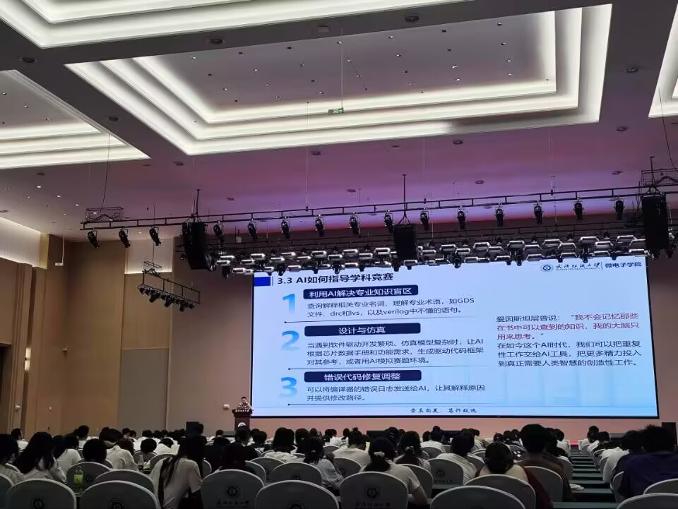 张老师深耕创新创业、专业学科竞赛领域,以“让专业能力在赛场落地”为核心,结合多届学生获国家级、省部级奖项的案例,从三方面展开。在竞赛认知上,他以指导学生凭竞赛获名企实习为例,强调竞赛是将“半导体物理”“集成电路设计”等理论转化为实用作品的关键平台,对接行业与升学需求,指出学科竞赛是专业知识的“精炼场”。