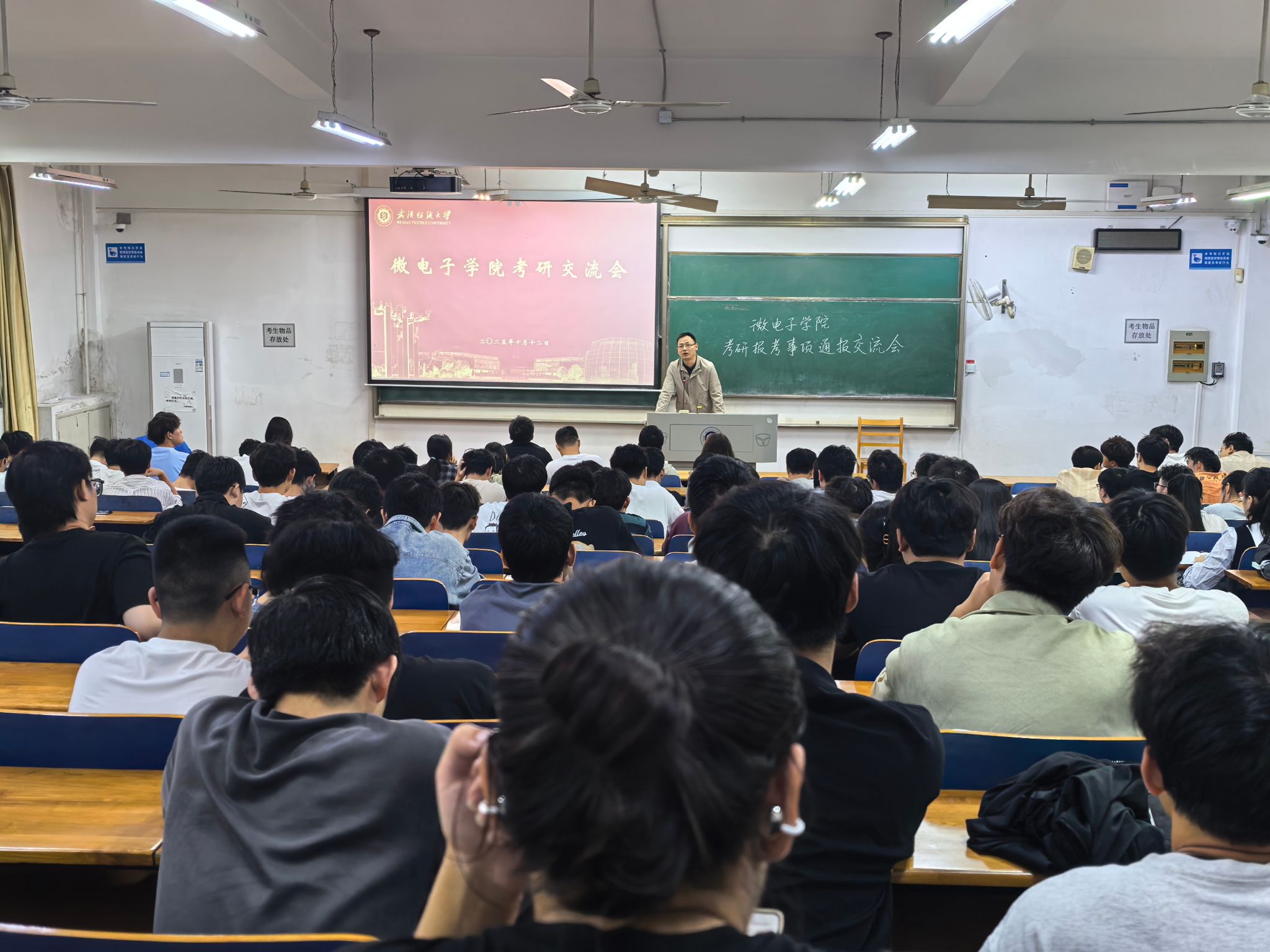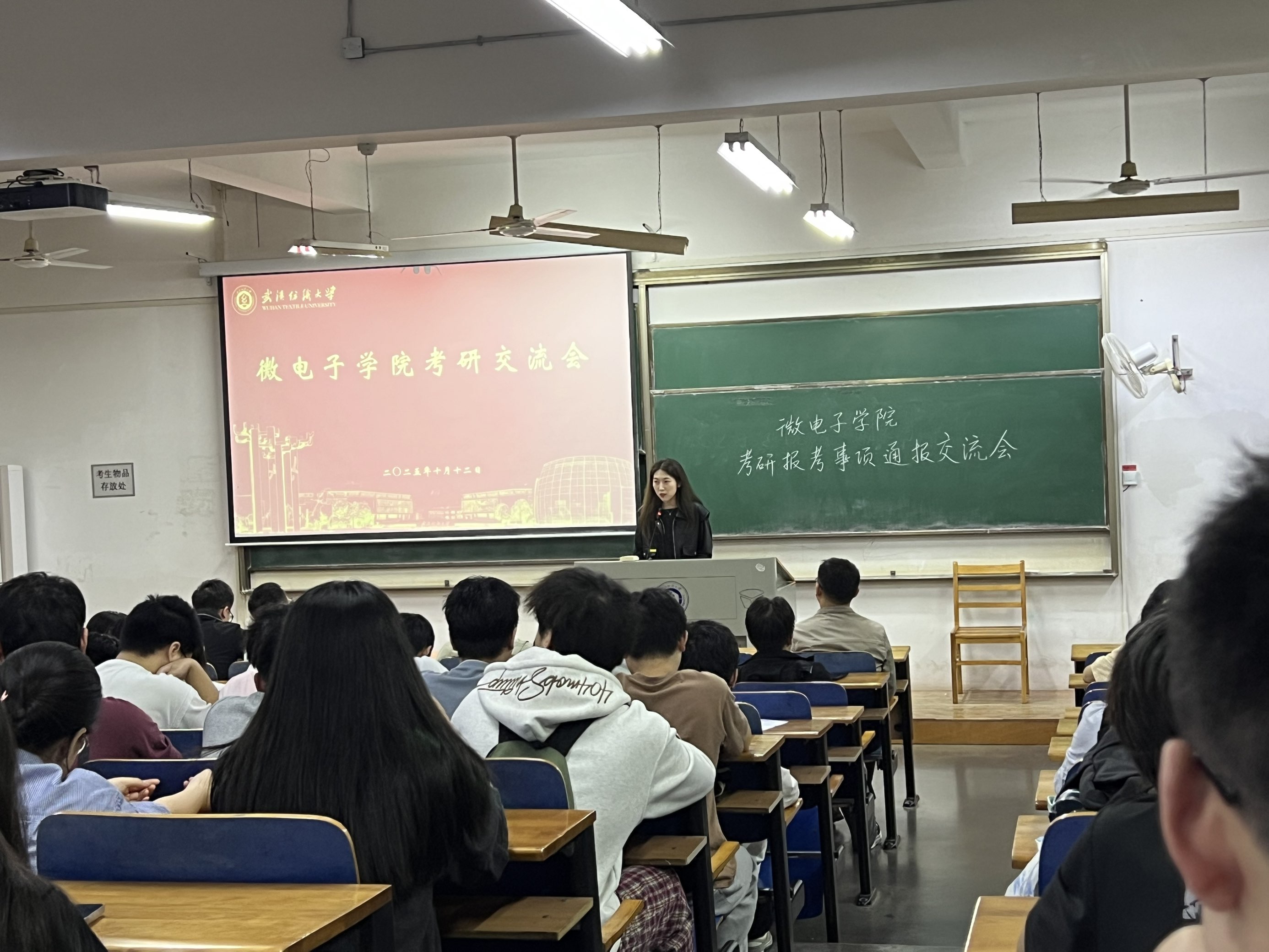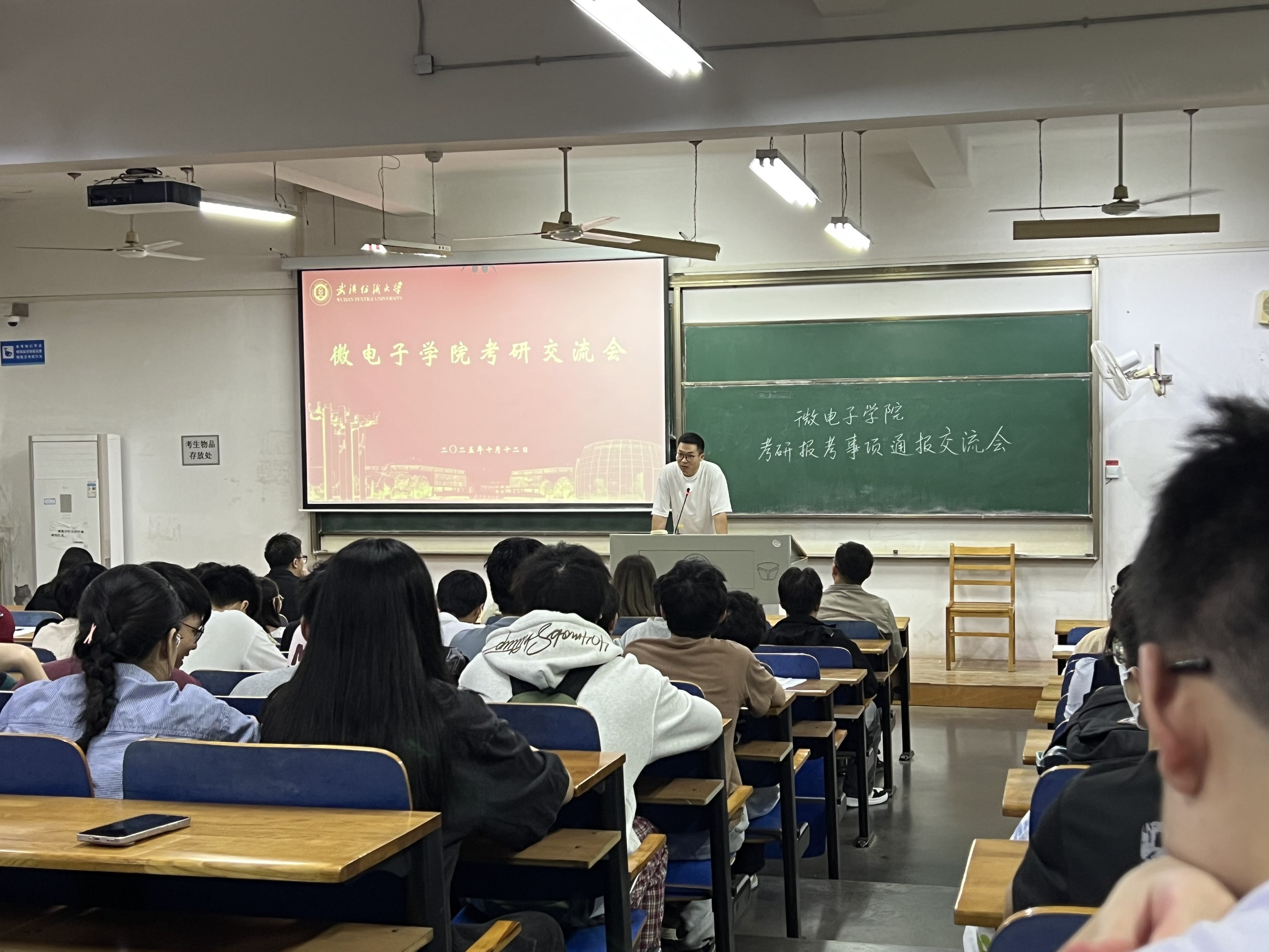 10月12日,永利3044集团在崇志楼118教室召开考研报考动员会,学院党总支副书记古江波、微电子系主任朱维老师参加会议并进行动员辅导。本次活动还特别邀请了3名优秀毕业研究生校友返回学校,与同学们面对面交流,结合工作经历畅谈读研对职业发展的价值,分享考研报考的有益经验,引导同学们积极报考的同时科学理性选择目标。永利3044集团22级考研学子和23级全体同学参加了动员会。