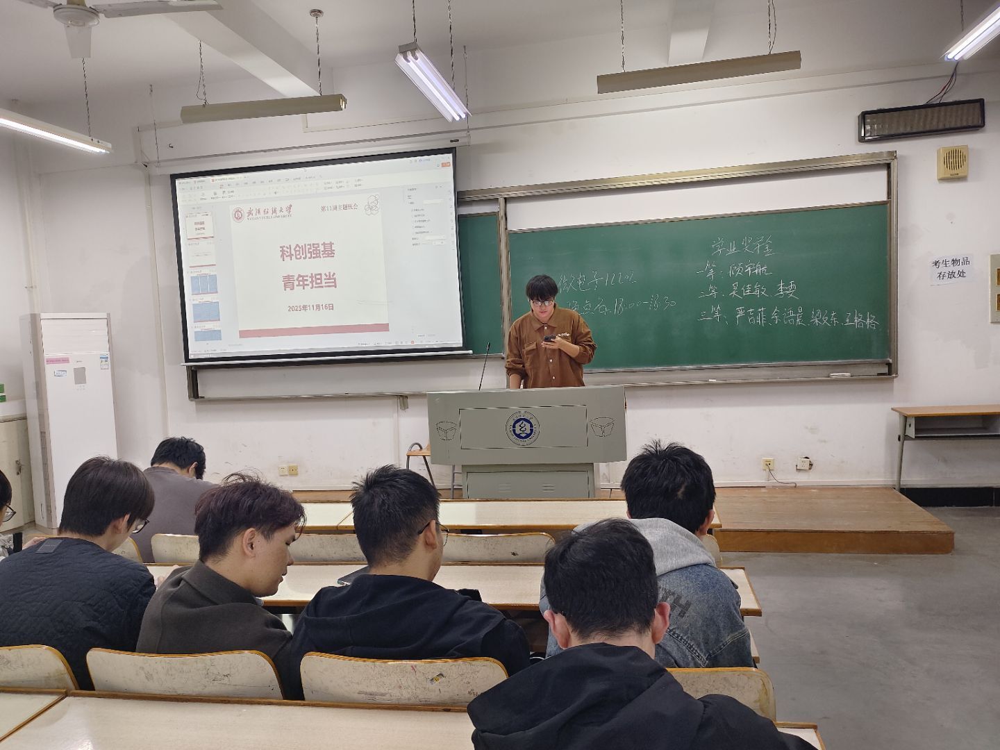 11月16日,学院在崇志楼各晚点名教室开展“科创强基 青年担当”主题班会,围绕科创精神培育、学科竞赛赋能、校园学风建设三大核心,面向各年级学生开展专项教育动员,激励青年学子以创新实践锤炼本领,以实干精神勇担时代使命。