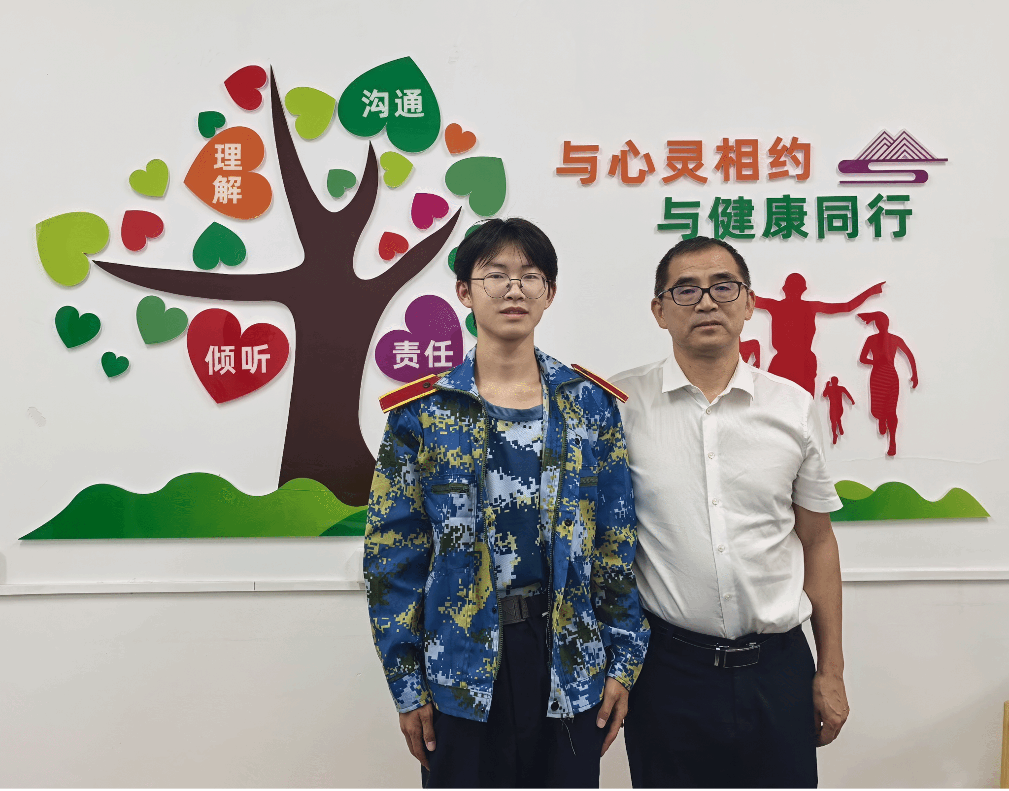 慰问期间,姜明华向肖同学赠送书籍并合影留念,并与他定下“毕业之约”——期待他在大学四年脚踏实地、勇敢追梦,待到毕业时节一同见证青春与奋斗的成果。
