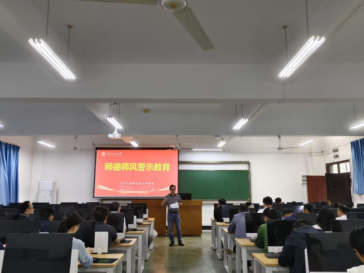 随后,周平传达了学校党委理论学习中心组(扩大)会议精神,围绕意识形态、安全稳定、师德师风等进行了细致强调。周平就实验室安全、学生宿舍安全、学生心理健康等方面工作提出明确要求,强调要克服麻痹思想,以时刻高度警惕的心态将安全工作做实做细。周平带领教职工认真学习了《师德师风十项准则》,结合招生考试、酒驾醉驾、师德失范等典型案例开展警示教育,要求全体教职工以案为鉴,恪守职业道德,严守纪律红线,共同维护学院风清气正的良好生态。