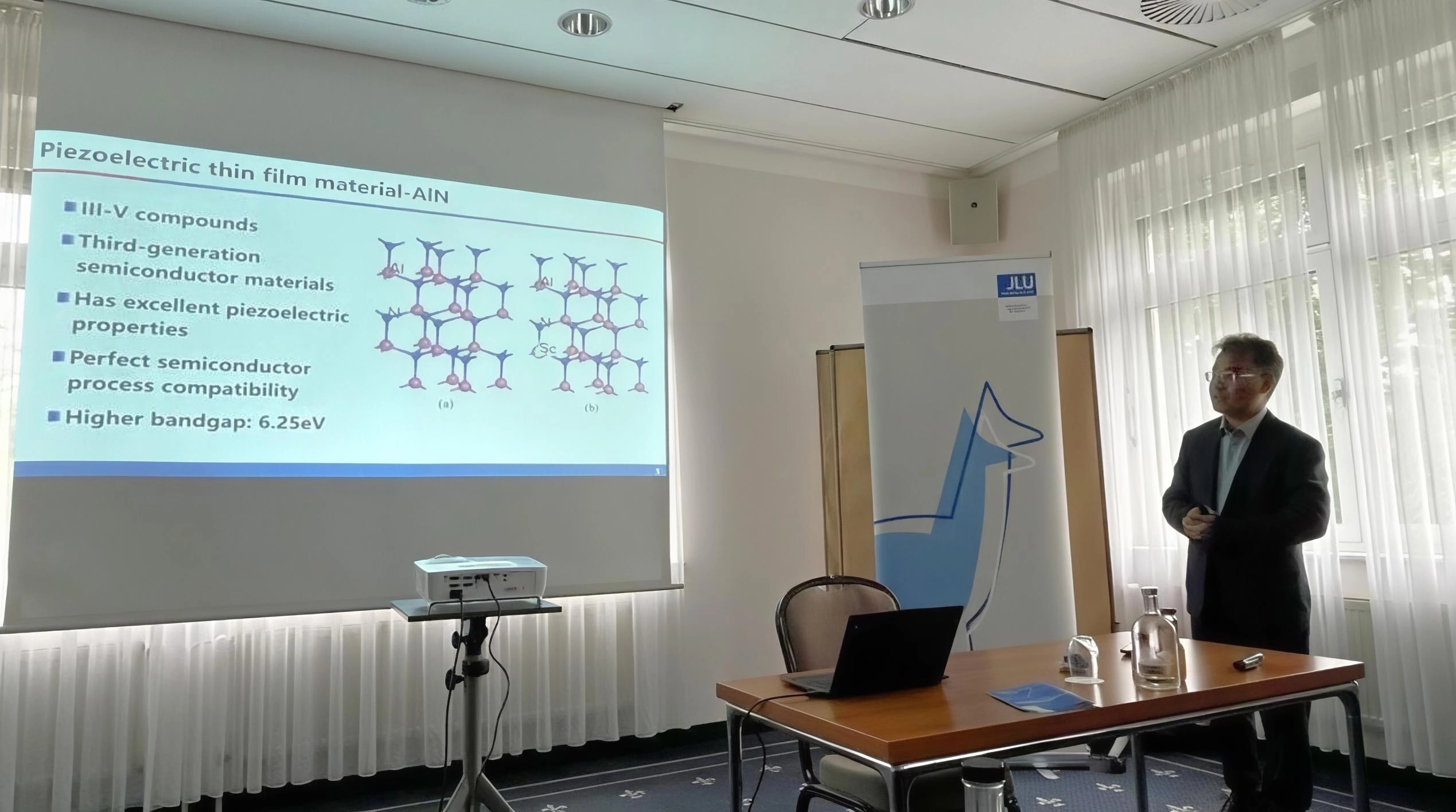 会议期间,我院教师积极参与学术研讨。何云斌教授基于会议主题作大会特邀报告,系统阐述了其团队在VO2相变机理及其智能窗应用设计方面的研究进展;陈长清教授作了题为“深紫外LED及其应用研究进展”的大会特邀报告;汪胜祥教授、彭孟博士、陈剑博士也围绕宽禁带半导体材料与器件主题作了特邀报告。与会教师与德国学者展开了深入学术讨论,为后续研究积累了宝贵的国际见解与富有启发的意见建议。