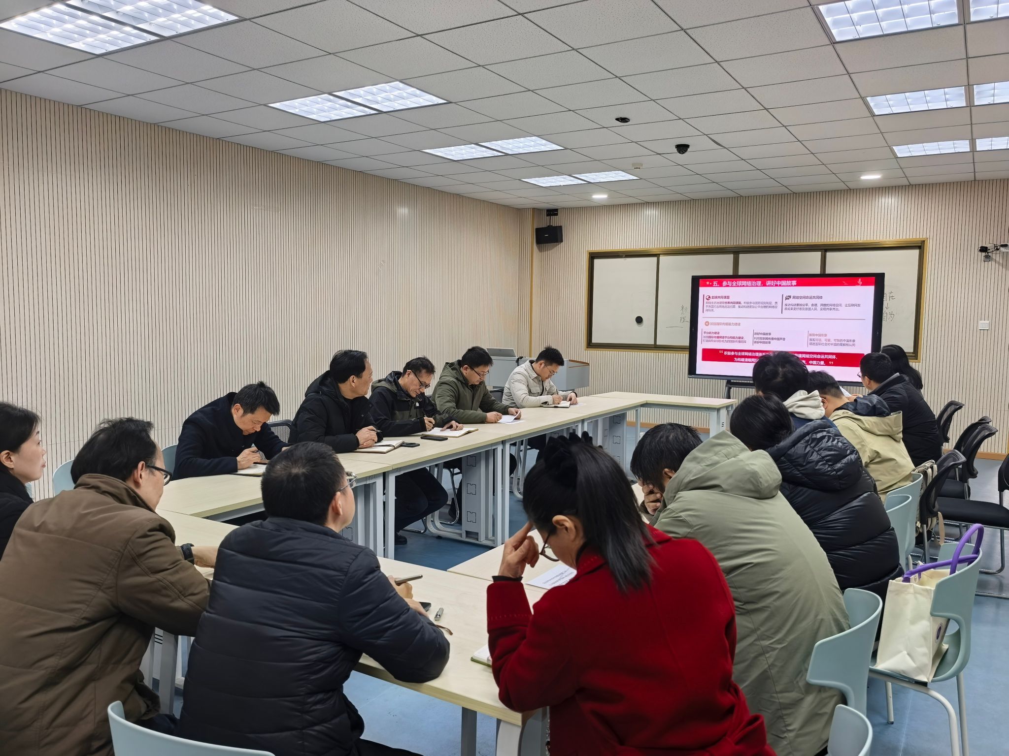 会上,与会人员首先集体研读了《习近平在中共中央政治局第二十三次集体学习时强调健全网络生态治理长效机制 持续营造风清气正的网络空间》重要文章,深刻领悟习近平总书记强调的“网络生态治理在国家治理中占有重要地位”“网络生态治理是一项系统工程,要充分调动各方力量,综合运用教育、行政、法治等多种手段”“当前人工智能、大数据等新技术新应用不断涌现,给网络生态治理带来挑战,也提供新的支持条件”等论断,以及习近平指出的“源清则流清,要坚持以正面声音、主流价值、时代新风塑造网络空间,使互联网成为思想引领、道德培育、文化传承的重要阵地”“网络乱象污染社会风气,侵犯群众利益,要敢于亮剑、坚决打击,切断利益链和产业链,铲除其滋生的土壤和条件”“网络生态治理是世界各国面临的共同课题。要积极参与国际规则制定,携手各国打击网络违法犯罪,推动构建网络空间命运共同体”等要求。