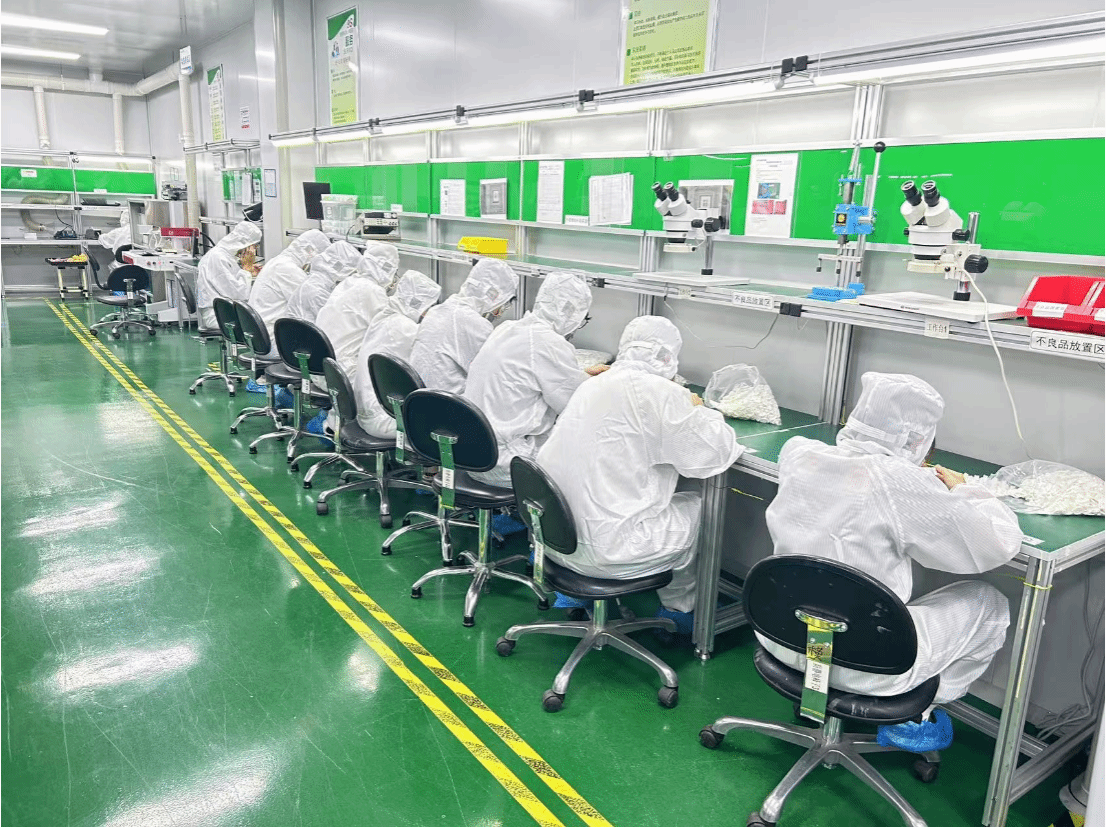 在实训首日,同学们在企业技术人员的讲解下,全面了解了公司发展历程、核心技术及产品应用场景。随后,大家走进芯片生产车间与模组封装线,近距离观摩深紫外LED产品从材料外延、光刻蚀刻、芯片制备到封装检测的全流程工艺,深刻感受到“纳米级精度”背后所蕴藏的技术力量与工程细节。“看到显微镜下芯片结构的一瞬间,真的感觉科技的力量近在咫尺。”微电子12201班学生汪仔健感慨道。