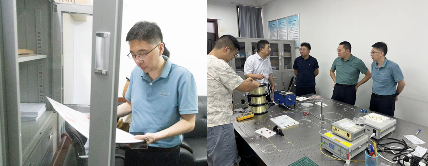 座谈会结束后,雷鸣一行在周勤教授的陪同下,参观了周勤教授团队的光纤激光器实验室。在实验室中,周勤教授详细介绍了团队在光纤激光器领域的研究进展、技术成果以及应用前景。雷鸣部长对实验室取得的科研成果表示高度赞赏,并鼓励团队继续深耕技术创新,为湖北省乃至全国的科技发展贡献力量。