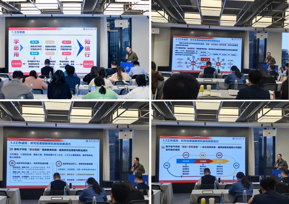 本次会议论坛从全国各高校报送的研究生思政教育成果中遴选了部分成果进行交流,我校古江波、陈宇凡老师报送的《导学-宣讲-践行:红色文化赋能研究生思政教育的“三部曲”》成功入选,并获邀作专题报告。论坛中,古江波介绍了团队近年来依托管理学院、永利3044集团、电子电气学院实施红色文化赋能思想政治教育的实践探索情况,解读了该项目践行“双主体”育人理念、打造“学思用贯通、知信行统一”育人闭环的工作思路,从“在行进中导学,牵动‘看’与‘思’并行”“在融会中宣讲,促进‘学’与‘育’融合”“在奉献中践行,推动‘知’与‘行’合一”三个方面报告了具体工作做法,并展示了该项目形成的“益起阳光”“微光领航”“思政+学科竞赛”等思政工作创新品牌。