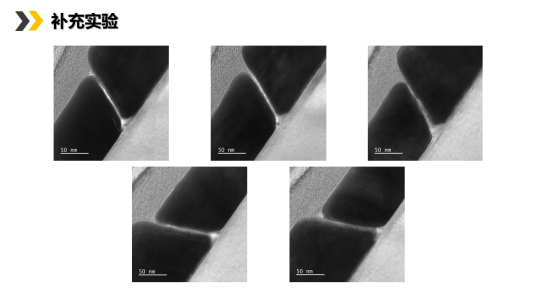 韦皓宸:本次大组会重点汇报了研究论文中实验数据的补充与图片整理情况。在基于选择性剥离光刻法(SPL)制备独立纳米间隙单元的研究文章中,新增了大面纳米间隙阵列的透射电镜表征结果,进一步验证了该工艺的可靠性与一致性。在FIB-TEM样品制备环节,采用聚焦离子束系统Helios 600i对样品进行定点切削与减薄处理,成功制备出厚度低于100 nm的薄区,并将其固定于铜载网以用于后续观测。随后,利用双球差校正透射电镜JEM-ARM300F,在300 kV的加速电压下对样品进行高分辨率成像。表征结果显示,多个随机抽样区域的间隙宽度均小于5 nm,且整体结构呈现出优秀的均匀性与一致性,未见明显缺陷或尺寸波动。该TEM表征结果为SPL技术在大面积制备高精度、均匀的独立金属纳米间隙单元上的能力提供了直观而有力的实验证据,也进一步说明该方法在微纳光子器件制造中具有巨大的应用潜力。