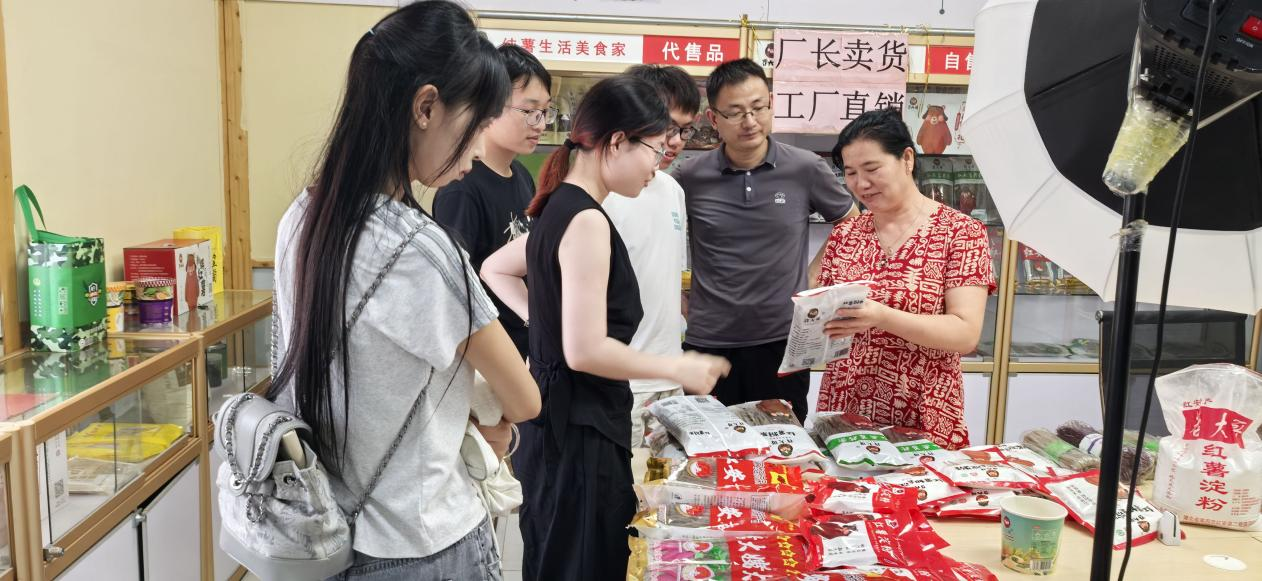 实践队还专门来到红安县二程镇红安伟杰现代农业发展有限公司调研,了解当地发展红苕特色产业,促进农民增收、推动乡村振兴的有益实践。作为当地乡村振兴重点企业,该公司创立“苕大哥”特色品牌,利用红安丰富的红薯资源,开发出苕粉、淀粉、酸辣粉、苕片等一系列产品,带动村民增收致富。师生们深入生产车间和电商直播间,详细了解红薯收购和“苕大哥”产品生产销售情况。