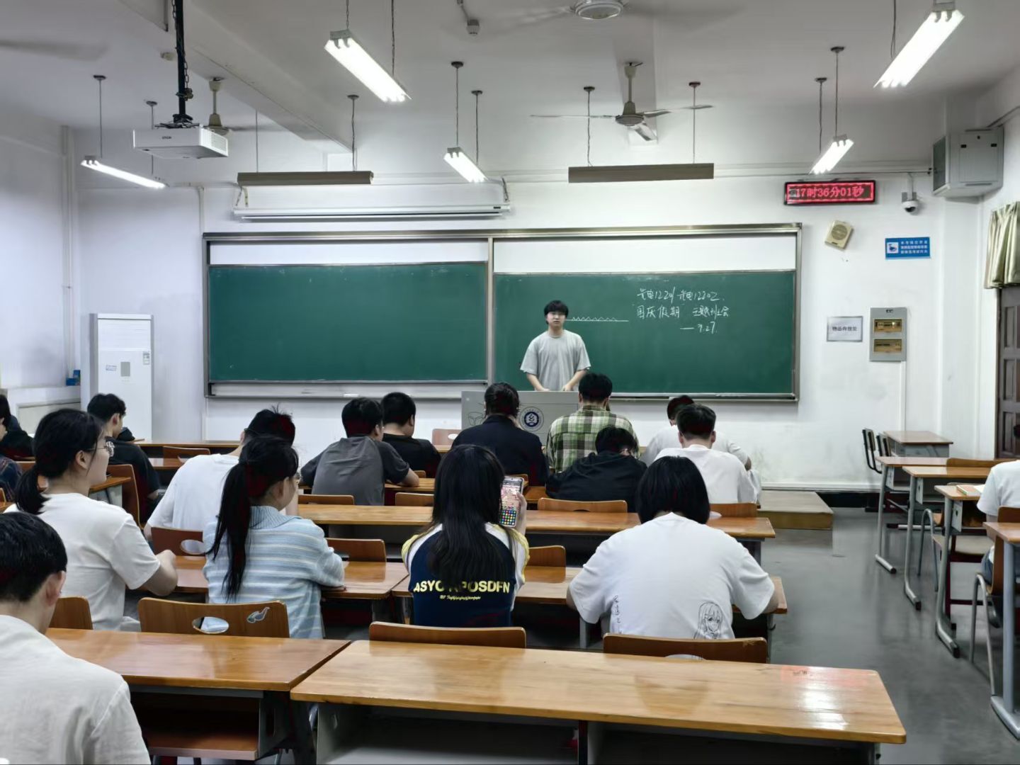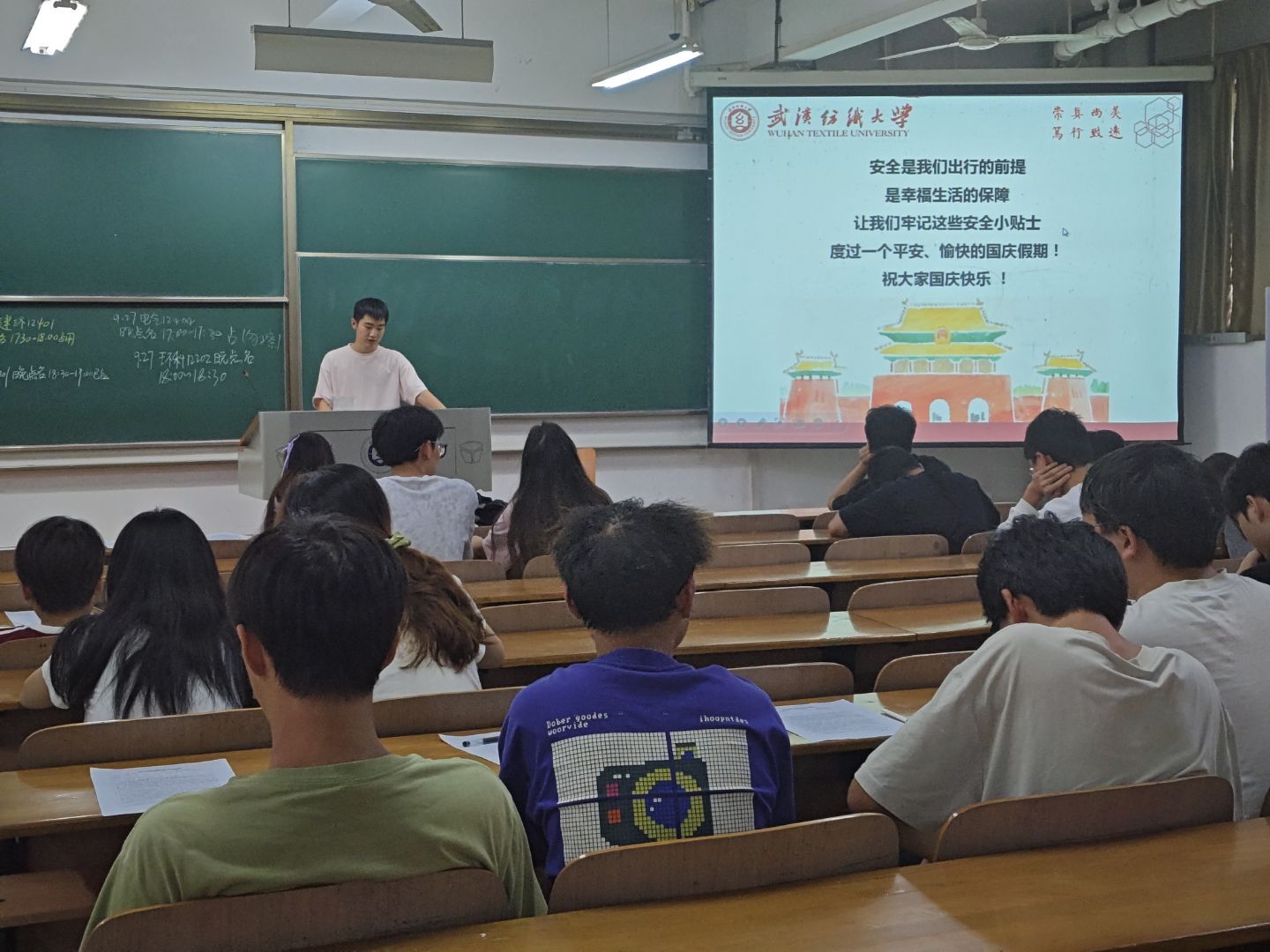 2024级辅导员苗帅在晚班会教育中,深入开展国庆中秋放假安全专题宣讲与近期竞赛事项通知,通过系统解读假期出行安全、住宿安全、饮食安全、用火用电安全等注意事项,结合校园及周边真实安全案例剖析,为学生敲响假期安全警钟;同时,详细介绍近期各类学科竞赛、技能竞赛的报名时间、参赛要求、赛事流程及奖项设置,明确竞赛备赛的重点方向与资源支持渠道。 他强调“假期安全是底线,竞赛机遇要抓牢”,要求全体学生从规划假期行程、规范假期行为做起,自觉增强安全防范意识与应急处置能力,做到主动排查风险、严格遵守安全准则、善于应对突发情况;同时鼓励有潜力、有兴趣的学生积极了解竞赛信息,主动咨询备赛问题,合理分配时间精力,积极报名参赛。全体师生共同筑牢假期安全防护网,携手营造积极向上、奋勇争先的竞赛参与氛围,确保度过一个安全、充实、有意义的国庆中秋假期,同时为校园竞赛成果提升凝聚力量。