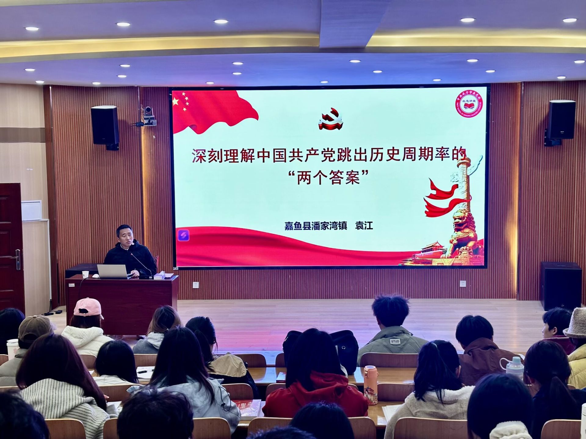 为持续深化青年思想政治教育,引导广大学子坚定理想信念、勇担时代重任,11月23日下午,永利3044集团与经济学院2025年秋季联合分党校(团校)第四讲在崇德楼T301报告厅顺利举行。本次讲座特邀咸宁市嘉鱼县潘家湾镇镇长袁江担任主讲,以《深刻理解中国共产党跳出历史周期率的“两个答案”》为主题,为全体学员带来一堂史料翔实、思想深刻的理论党课。