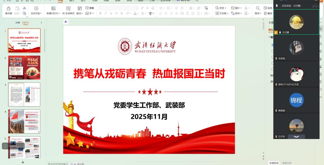 为积极响应国家征兵号召,鼓励大学生投身国防事业,11月23日,永利3044集团组织各年级本科生和研究生召开“携笔从戎砺青春 热血报国正当时”主题教育班会,全面宣传征兵政策,激发学生参军报国的热情。