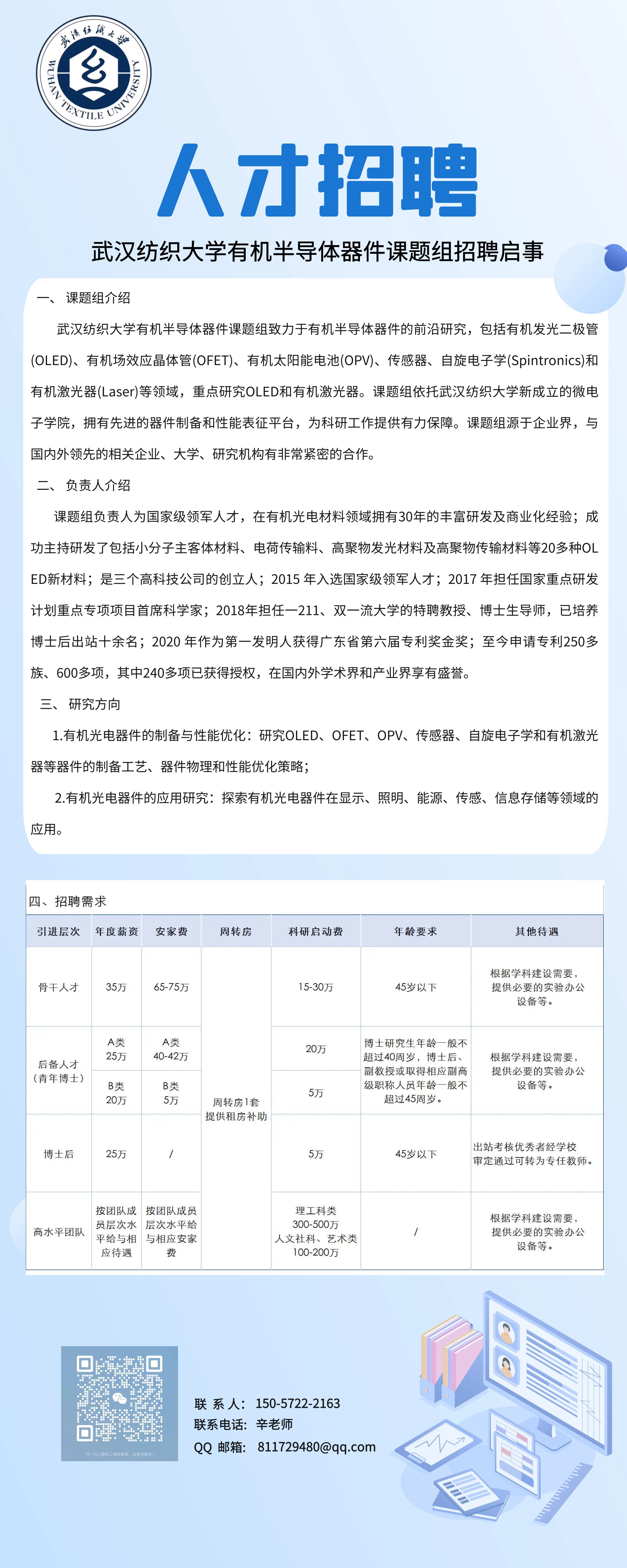 永利3044集团有机半导体器件课题组招聘启事